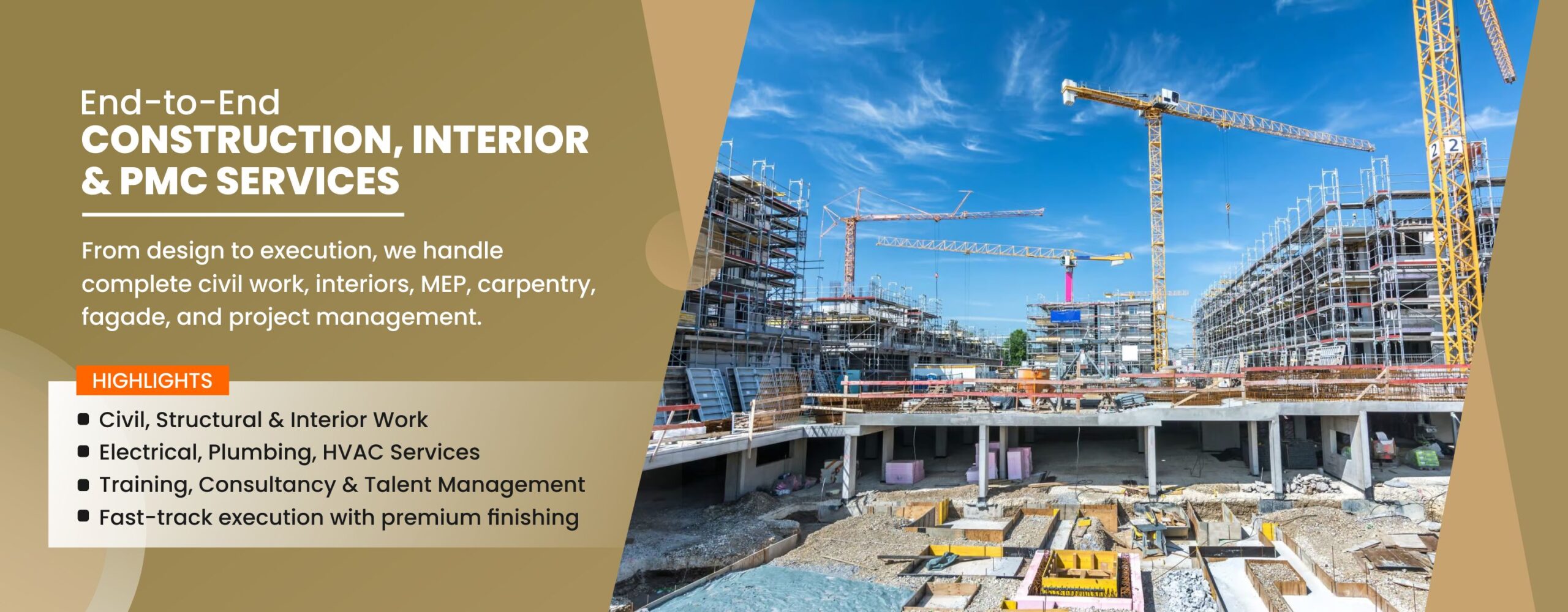 Turnkey with Civil & interior with all services designs, build and PMC